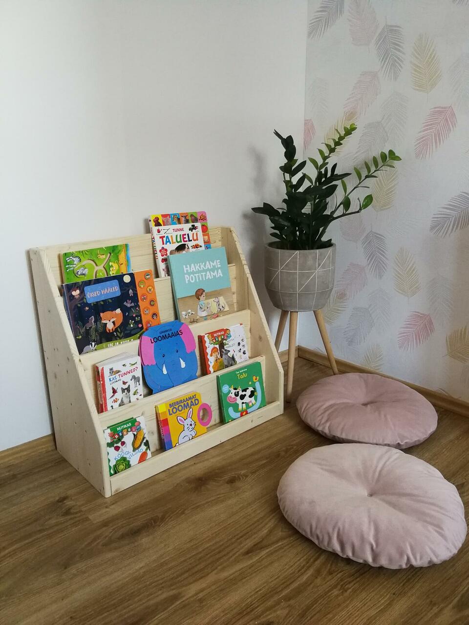 Maria Montessorist inpireeritud raamaturiiul. Raamatud asetsevad riiulil nii, et esikülg on nähtav, see julgustab lapsi raamatuid lugema ja see omakorda suurendab nende iseseisvust. Raamaturiiulil on neli tasandit, millest iga üks mahutab ca 3-4 raamatut.