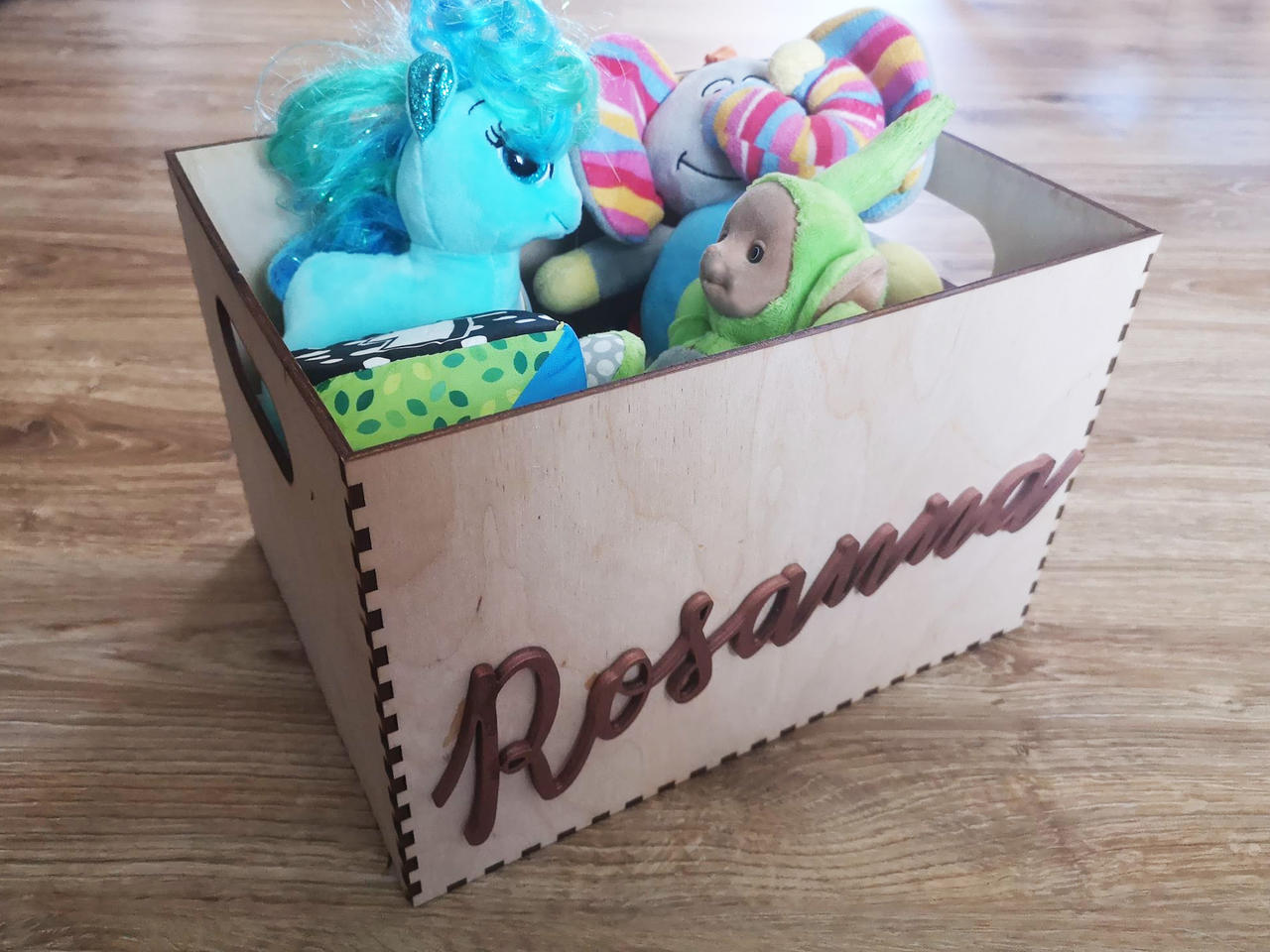 Mänguasjakast on valmistatud 4mm vineerist. Hinna sisse kuulub ka värvitud lapse nimi!