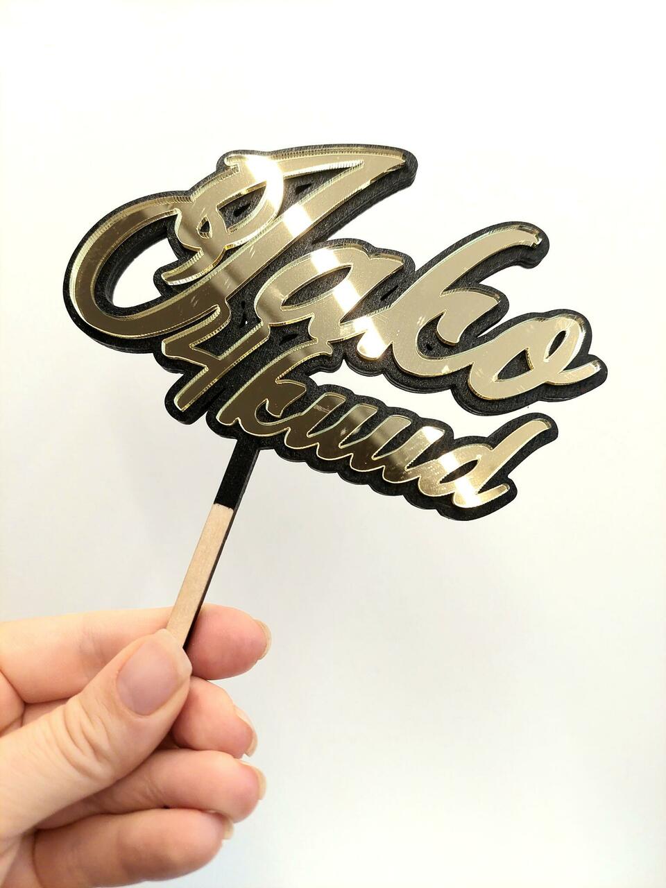 Topper on valmistatud 4-6 mm vineerist ning 3mm kuldsest peegelakrüülist